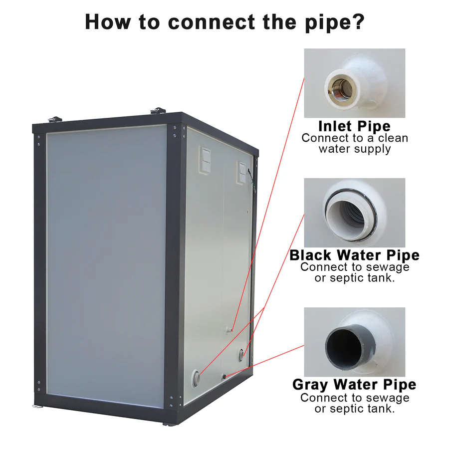 - Outlet Pipe Material: PVC Pipe, Inner Diameter: Gray Water Pipe: 1 ⅘ inch, Black Water Pipe: 3 inch