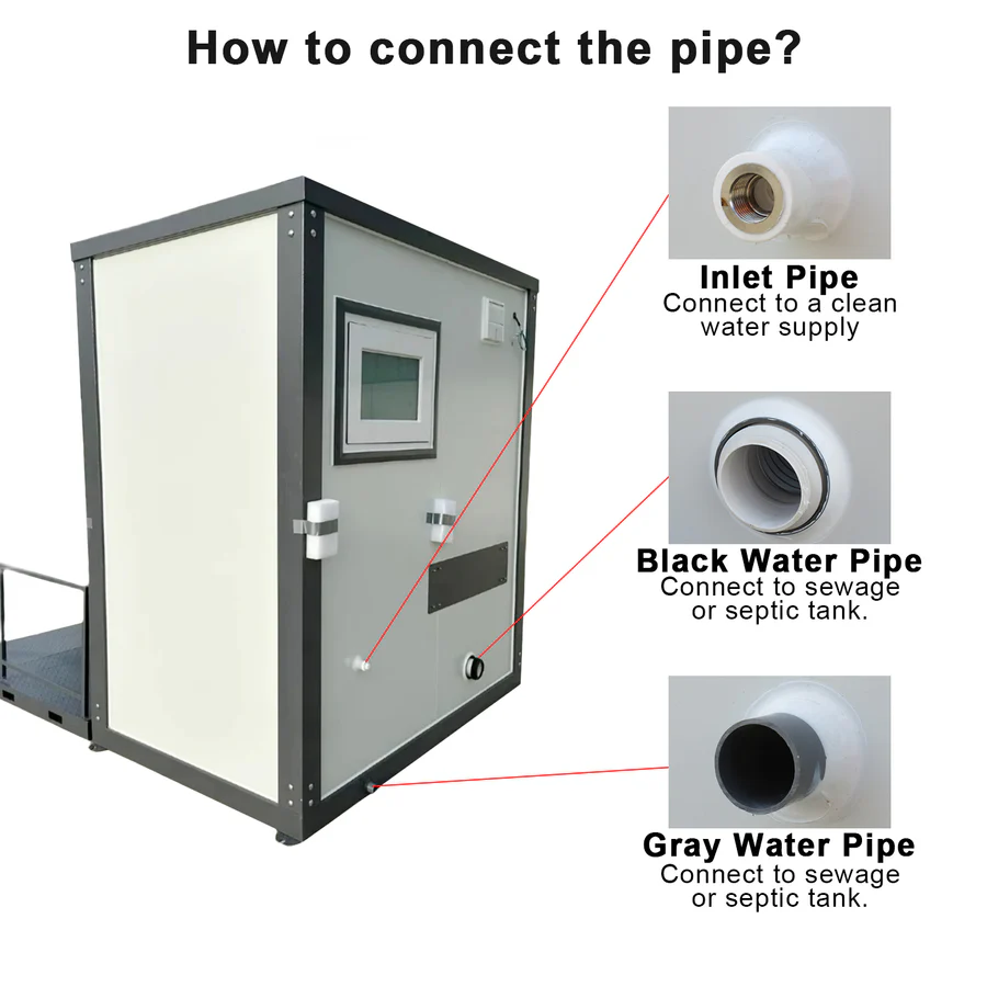 - For construction sites, connect toilets to the sanitary sewer system and water to the pipe system. Otherwise, use external tanks for waste.