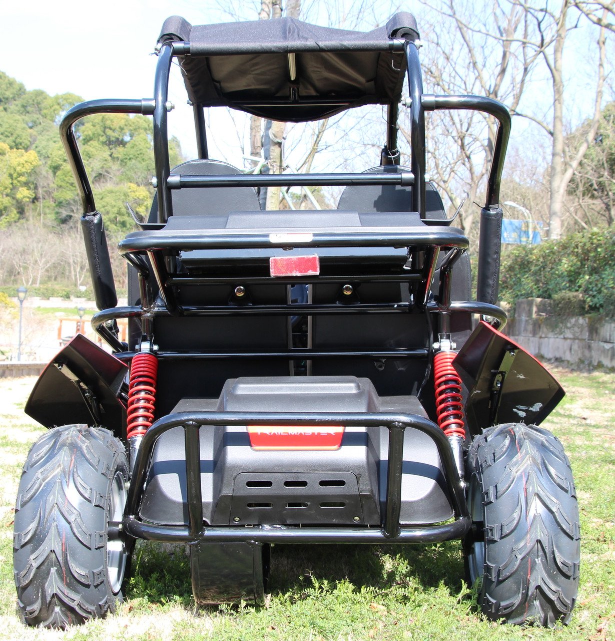 - Durable and Comfortable: Built for rugged terrain with double A-arm front suspension and double oil-damped shock rear suspension. The adjustable driver seat and rack and pinion steering wheel ensure a comfortable ride.